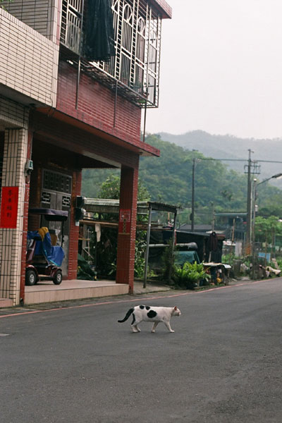 第二隻遇到的乳牛貓,看到我們拔腿就跑,
