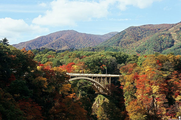 鳴子溫泉站[紅葉號巴士]→中山平口前→漫遊鳴子峽